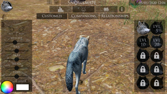 3、任务是随机的,有唱歌、喂食物、洗澡等,完成指定的任务就可以和那个野狼结为伴侣了