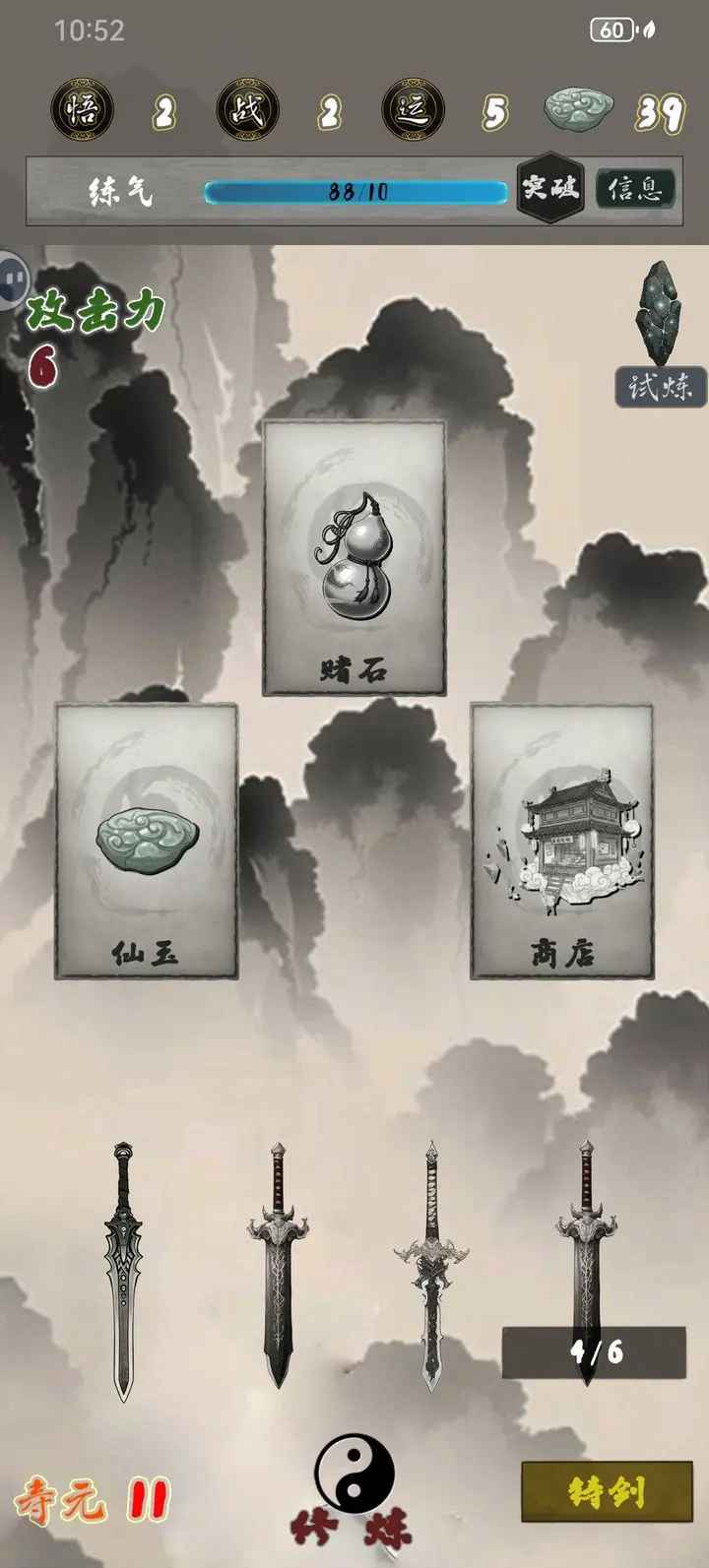 商店:可以花仙玉买到寿元,属性,修为,五元素石,天道石和剑槽(开剑槽的唯一手段)(鱼肠能免费获取一个物品)