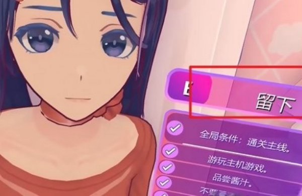 1、需要先一周目通过,然后在二周目的时候选择留下。