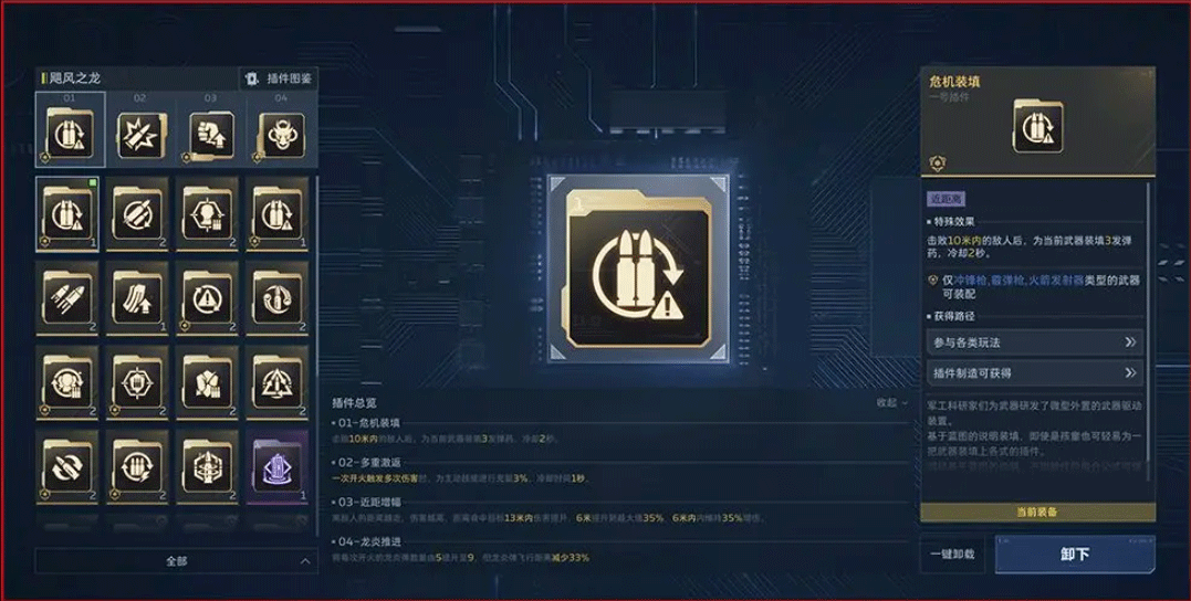 逆行者可以在主武器和副武器上装配武器插件,插件能够带来额外属性提升和词条效果。通过不同的插件组合,同一把武器也能有多种战斗流派。