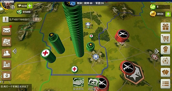 这是《二战风云2》相比前代最大的变化。不再是“建造-等待-点击攻击”的回合制,而是采用了即时战略(RTS)式的沙盘行军。你派出部队后,可以在半路上随时改变行军方向、撤退,或者对敌人进行围点打援。这使得游戏的操作感和技术性大大增强。