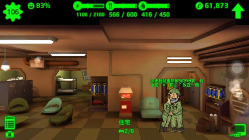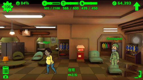 居民的属性(S.P.E.C.I.A.L:力量、感知、耐力、魅力、智力、敏捷、运气)会影响他们在不同房间的工作效率。