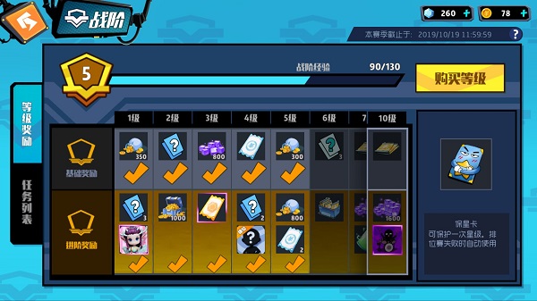 进入游戏后点击左下方的猫咪进入战阶系统,每天都会有日常任务,且每8小时刷新一次,每天可更换3此日常任务,要注意日常任务最多累计8个,因此当刷新了新的日常任务后,就要赶快记得完成,每周也会有对应的周挑战任务。当达成这些任务后就会获得对应的经验,每周任务相比日常任务获得的经验值会多很多,而这些经验便可以帮助我们提升战阶等级,战阶等级最高为75级,每到达新的级别,就会获得对应的奖励。奖励分为基础奖励和进阶奖励,进阶奖励需要用钻石购买才可获得,不过进阶奖励有许多超值的皮肤动作等道具,并且售价也不贵,强烈建议购买哦~。