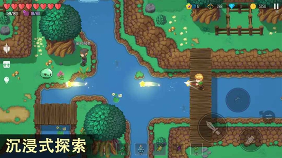 探索解谜:在2.5D的立体地图中穿梭,利用不同伙伴的能力破解机关(如骑士砍断藤蔓、人鱼进入深水区)。