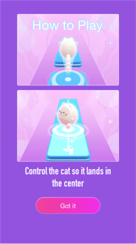 节奏闯关:玩家需通过滑动屏幕操控猫咪,使其精准踩中不断下落的音符方块,完成与音乐节奏同步的挑战。游戏强调节奏感与操作精度,需保持连击以获取更高评分。