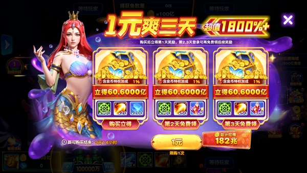 实时联机竞技:支持万人在线联机,还原街机室多人捕鱼场景,实时排名赛与跨服周赛提供黄金炮台、限定翅膀、万元话费等豪礼。