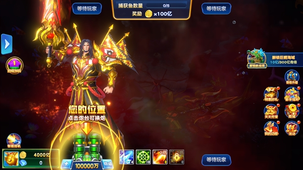 限时高爆渔场:专属“熔岩宝库”渔场中,所有鱼群自带爆金BUFF,击杀额外掉落钻石,叠加“熔岩巨鲲”的怒火层数可触发全屏岩浆雨,清屏收割金币。