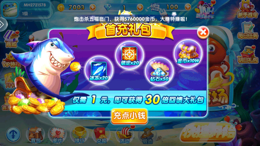 道具与技能系统:提供全屏冰冻、锁定、自动发弹等技能,搭配多样化道具(如至尊宝币、增幅核芯),大幅提升捕鱼效率。增幅核芯可解锁“炮倍增幅”技能,突破炮倍上限,增强战斗力。