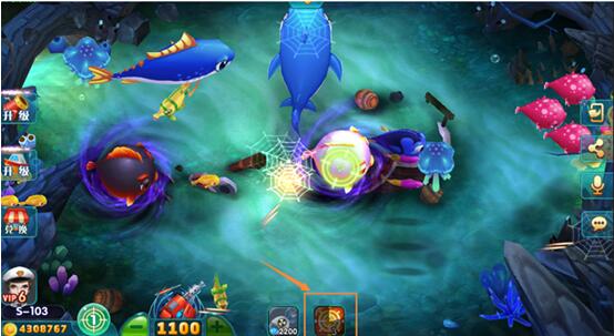 炮台与技能系统:提供多种炮台(如基础炮、激光炮、范围炮等),玩家可通过金币升级炮台威力,解锁特殊技能(如冰冻、炸弹、追踪等),提升捕鱼效率;