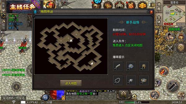 6、领取完所有奖励我们就可以前往一个地图来进行打怪了