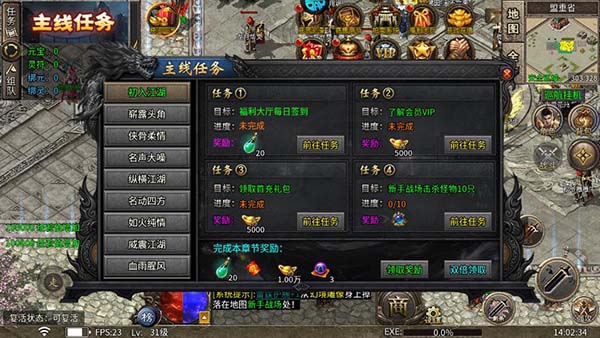 2、可以通过完成主线任务来快速提升等级和了解游戏玩法
