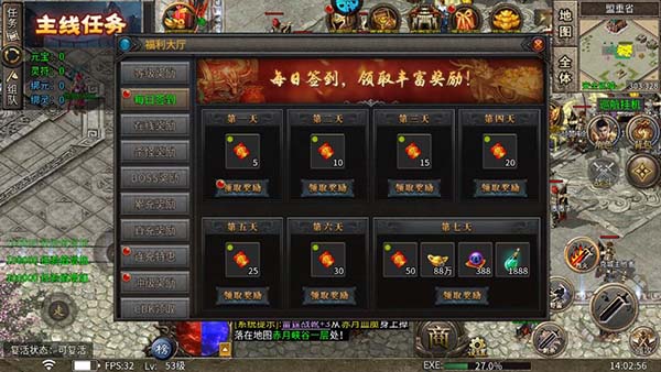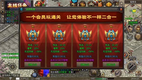 狂暴与转生系统:开启狂暴和转生可大幅提升攻击属性,增强打怪PK能力,高级玩家可通过唯一赞助获得更强属性。