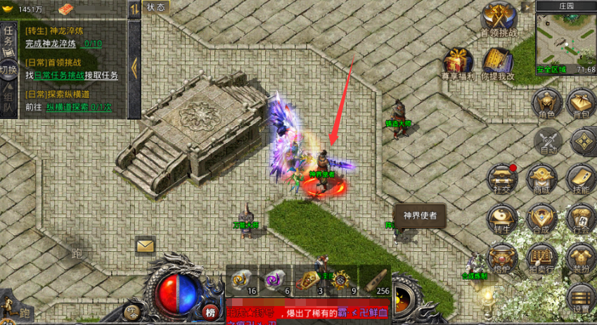 全维度成长路径:构建“装备强化+斗气进阶+元神培养+坐骑翅膀”的养成体系,装备可通过打怪爆装、合成镶嵌提升战力;斗气系统需升满当前阶段10颗星级进阶,支持丹药、元宝或灵符进阶;坐骑、翅膀不仅提升属性,还附带炫酷外观特效,兼顾实力与颜值。