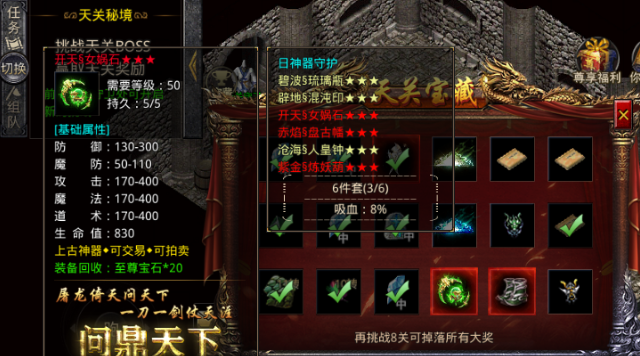 6阶则激活“尊神器守护”(吸血20%),还可进入新地图。