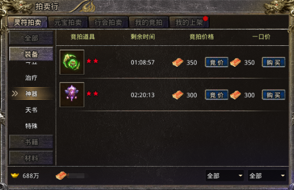 | 4.拍卖行购买 | ![]() | 同样意味着,有多余的神器可以在拍卖行出售 |