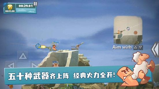 游戏拥有超过80种夸张的武器,如双管猎枪、绵羊炸弹、疯牛、神圣手雷等,还有载具(坦克、直升机)和可破坏建筑加入,进一步丰富战术选择。