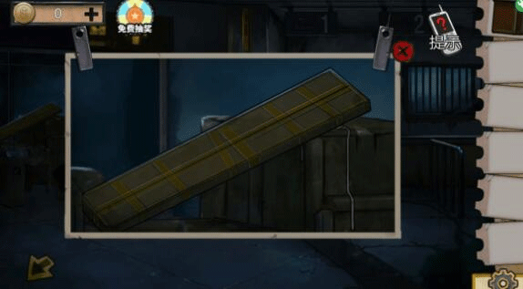 6、然后我们回下水道,用钥匙打开如图所示的锁,获得木板后去警卫室,用小刀划开垃圾桶,使用夹子即可得到湿纸片,放在警卫室灯上烘干即可获得下水道密码箱密码。