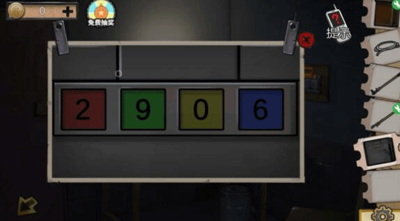(3)用蜡块打开包包,得到另外半边钳子和铁盒。对照警卫室墙上的图案,对着颜色输入密码:2906(注意这里对照的是数字的颜色,不是那个积木的颜色)。