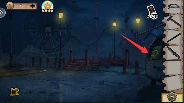 (4)摩天轮亮了就开开关,重置然后是上3,左1,右3。摩天轮亮了之后用铁棒撬开门,里面有个箱子,把木马的角放上去,得到轮子。
