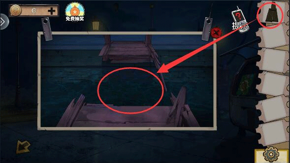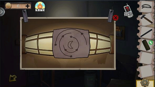 (3)用小刀划开警卫室垃圾桶,得到湿纸片,放在警卫室灯上烘干。对照纸片打开下水道盒子得到钩子,注意纸和机关不是一个方向的以及中间的图案。