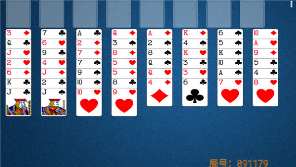 回收单元(目标区): 位于右上角,共4个空位。最终所有牌需要按相同花色从A到K叠放在这里。