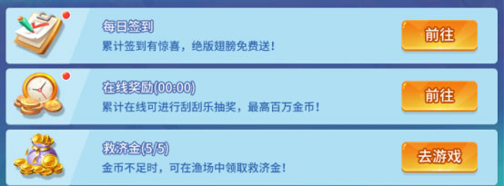 如果船长金币不足时,可以在渔场领取救济金,每天有五次的救济金领取机会