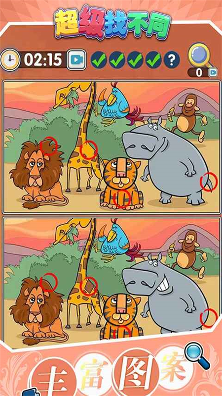 超级找不同游戏官方最新版是一款经典的休闲益智游戏,玩家需要在两幅看似相同的图片中找出所有细微的差别,游戏通常设有多个关卡,随着关卡提升,图片差异越来越难以察觉,考验玩家的观察力和专注力。