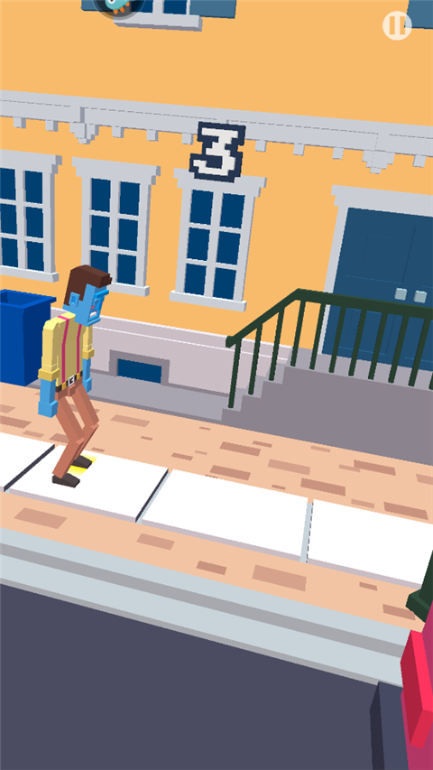 关卡场景丰富多样,从城市街道、工地到奇幻世界,每个关卡都设有独特的障碍物,如移动的平台、突然出现的坑洞、旋转的锯片等。随着关卡推进,难度逐渐提升,考验玩家的反应速度和策略。