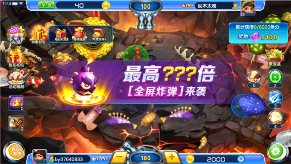 3.万人同时在线的联网PK捕鱼技能,多种鱼泡,锁定大鱼,锁定boss、自动射击等全新的各种玩法是你的巅峰武器。