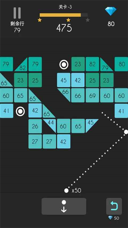 玩家通过拖动或点击控制弹球发射的角度和力度,弹射小球击中目标。