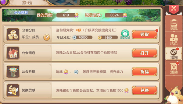 ps:公会根据公会研究院的等级,并结合公会每个成员的职位以及每周贡献度进行分红。