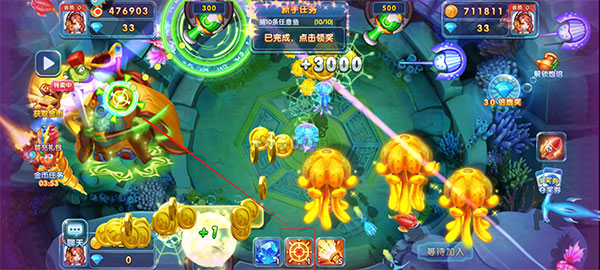 3.在捕鱼的过程中不仅仅是用炮台去捕鱼,还有很多辅助工具,可以让你更快更准的补到大鱼哦!