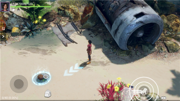 8、继续跟着虚拟图标行走,碰到椰子,点击拾取;