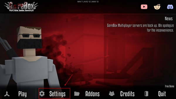 1、进入G沙盒仇恨7723游戏盒内置菜单游戏后,点击左下角settings;