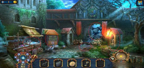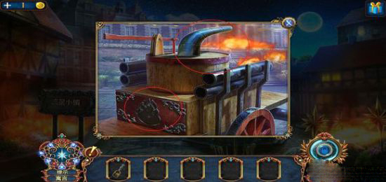 进入房子,右边壁炉捡起火的符号,用铲子铲灰,捡起框饰。左边地上,捡起火柴盒,小人。出门,在水车上用“火”打开柜子,得到