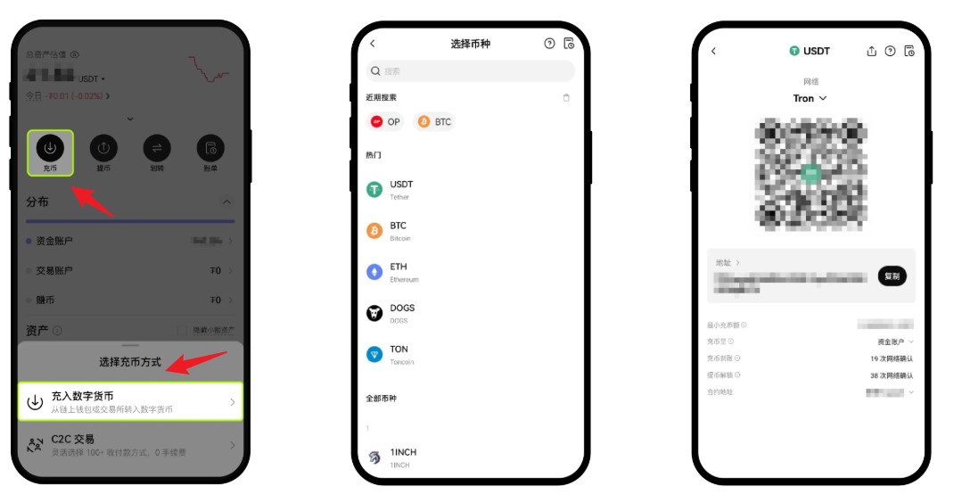 充值USDT或其他支持的稳定币到你的欧易账户。