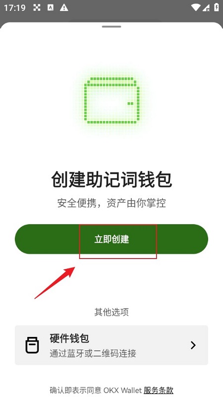 3、点击“立即创建”按钮快速创建助记词钱包;