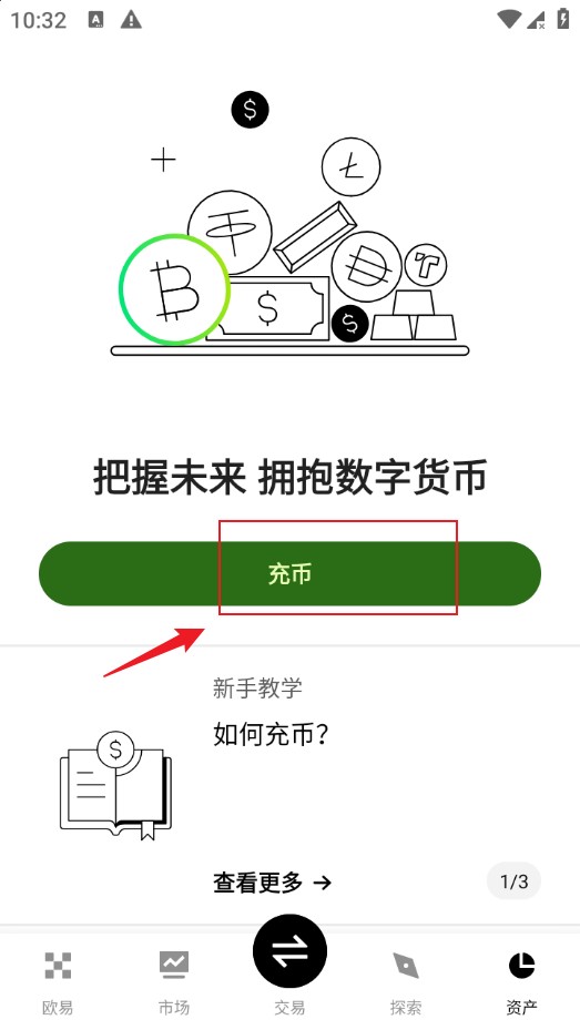 1.这里以OKX欧易APP举例,在新绿资源网下载并安装OKX APP
