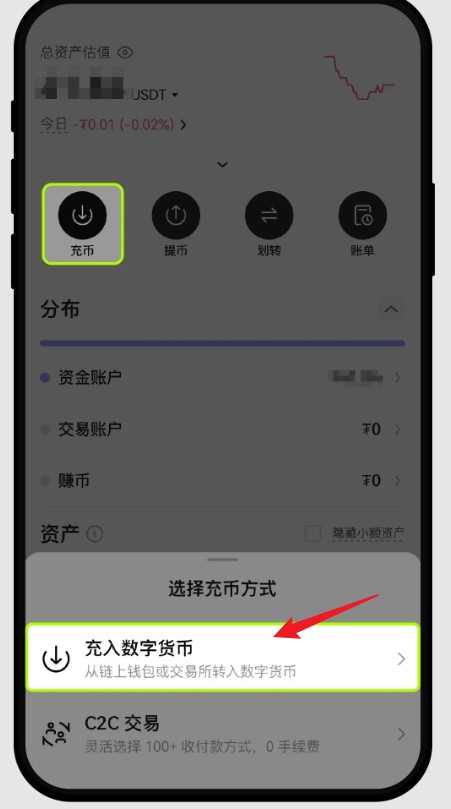 4.从钱包/其他交易所转入USDT(建议使用 USDT 作为保证金,稳定且通用)