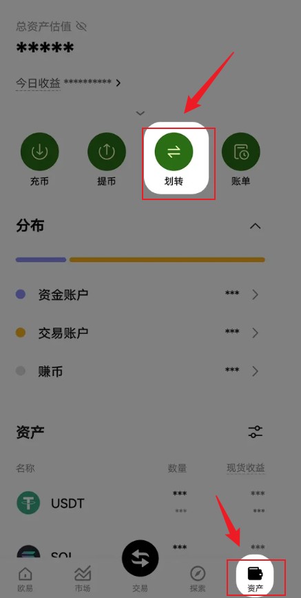 3.选择USDT,输入金额 → 确认,划转后资金才可用于合约交易。