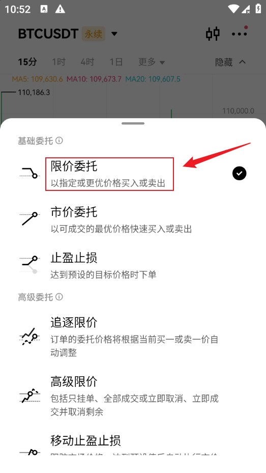 2.限价单:设置一个目标价格,只有价格达到时才成交。