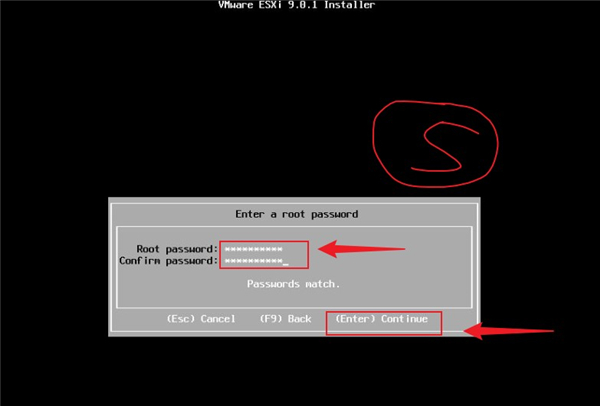 5.此时进入到设置密码界面,输入Root账号的密码,这里需要输入两次,输入完成后按Enter键;