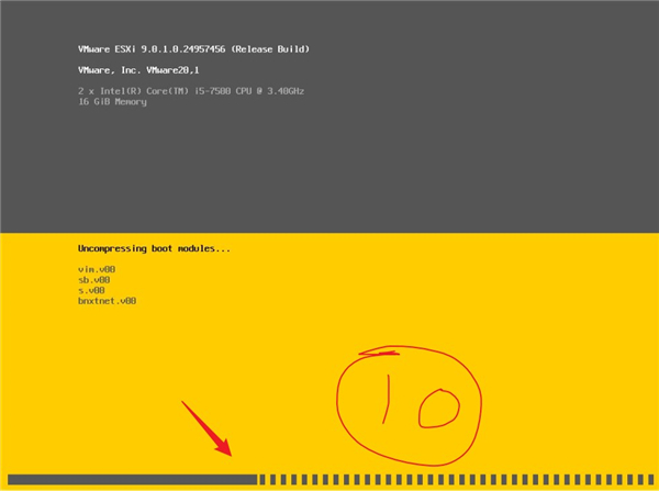 1.从新绿资源网下载ESXi 9.0.1.0 ISO镜像文件,默认按Enter回车键。