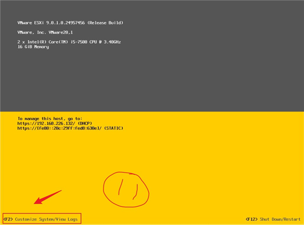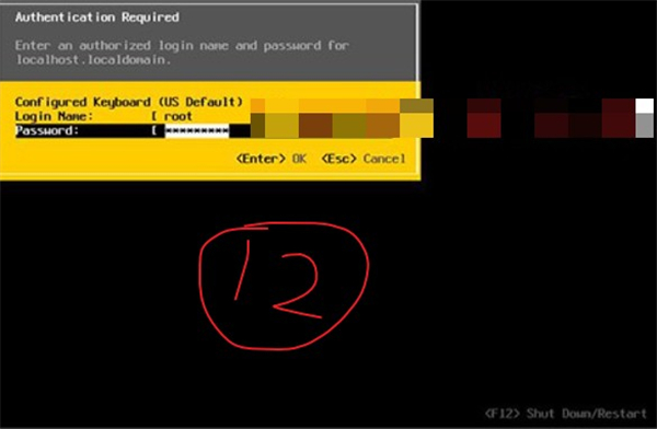 17.按F12重启系统后进入到VMware ESXi登录面板界面,输入用户名和密码进行登录;