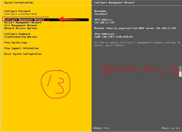 13.选择网络设置Configure Management Network选项,按Enter回车键;