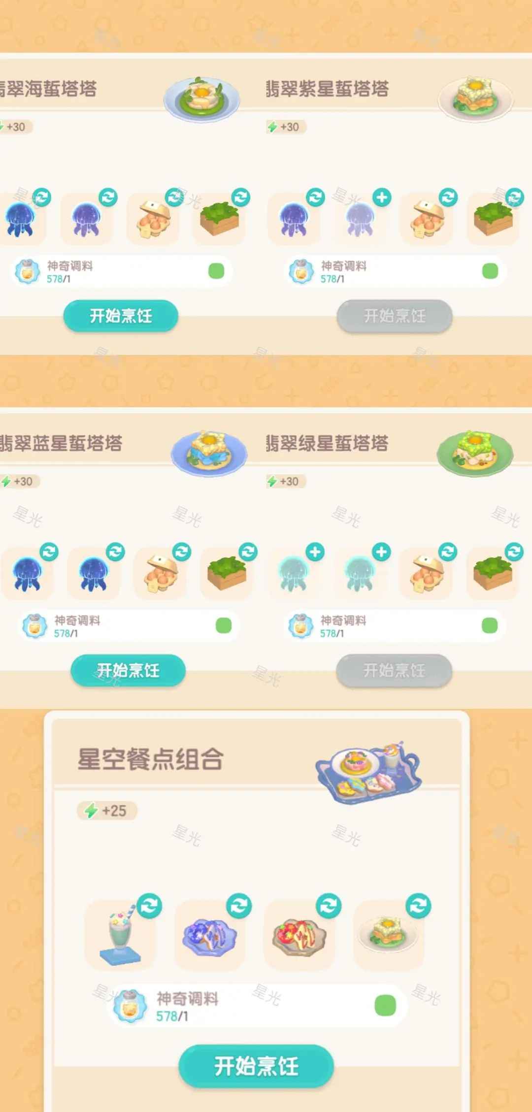 3翡翠海蜇塔塔有4种食谱,需要潮流季限定鱼为食材,如图6;