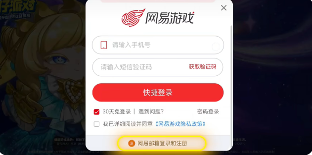 您也可选择网易邮箱作为以后登录官服的账号哦~ 我有手机号或网易邮箱账号解决方式:在登录界面,点击[网易邮箱登录和注册]按钮并完成邮箱的登录即可。 我没有手机号,也没有网易邮箱账号解决方式:在登录界面,点击[网易邮箱登录和注册],再次点击上方红字[无法注册账号?],即可进入无手机号验证流程~