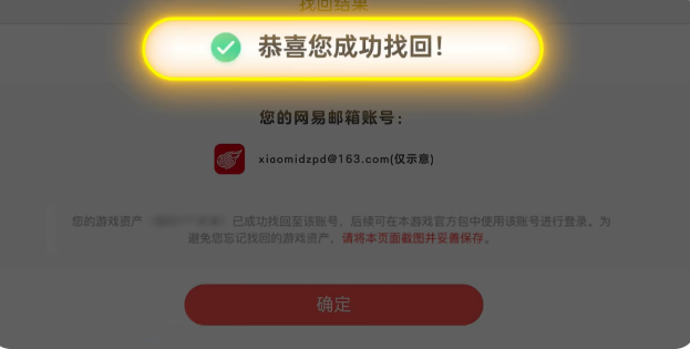 确认无误后,点击【确认】资产就成功找回啦~ 后续再下载蛋仔派对正版官服,即可正常登录官服客户端体验啦~