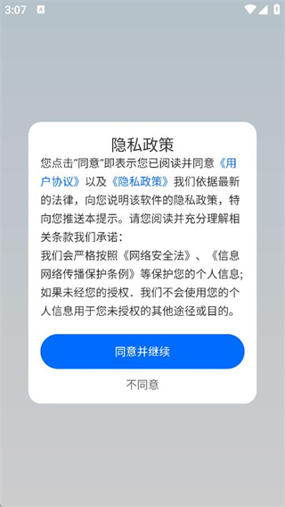 1、我们下载安装好摸鱼水印相机后,选择同意隐私安全协议;