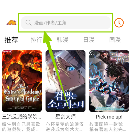 1、在最上方【搜索框】中输入漫画名称查找漫画作品;